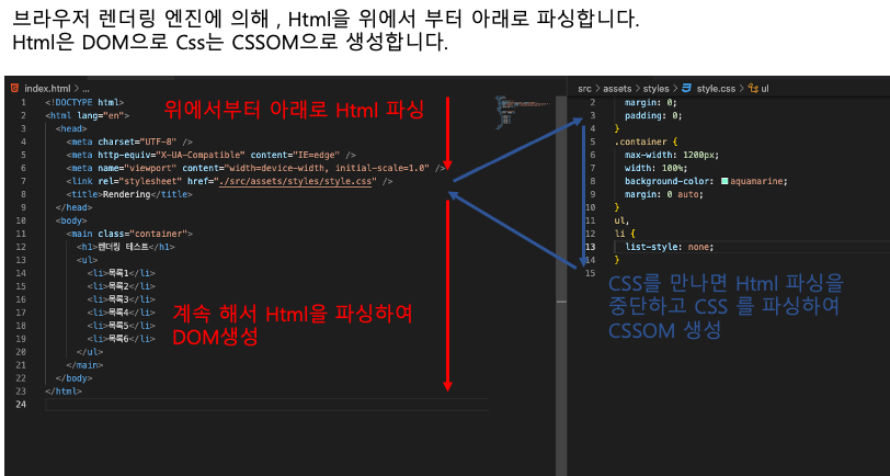 ๐ ๋ ๋๋ง ์์ง์ด HTML,CSS ๋ฅผ ๊ฐ๊ฐ DOM,CSSOM์ ์์ฑํ๋ค.