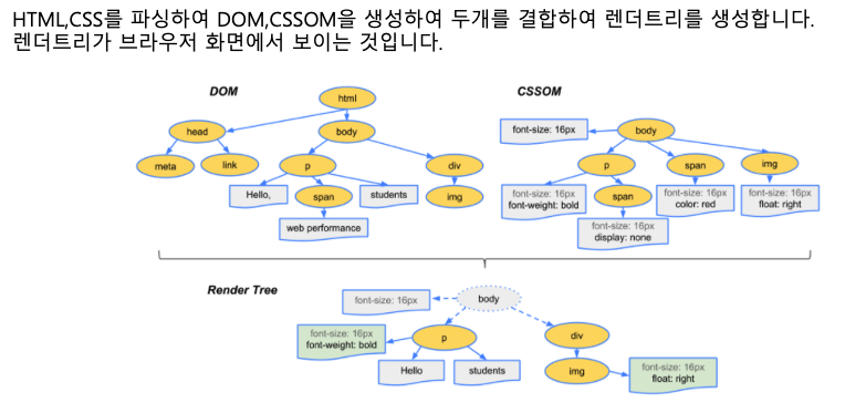 - ๋ ๋๋ง ์์ง์ด HTML,CSS ๋ฅผ ๊ฐ๊ฐ DOM,CSSOM์ ์์ฑํ๋ค.
