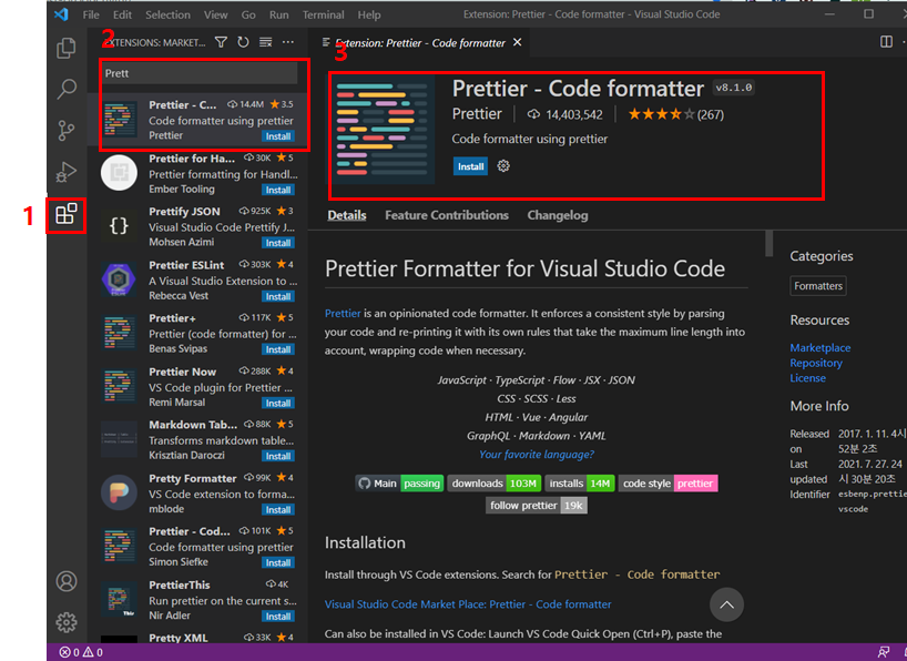 우선 Visual Studio Code에서 Prettier를 설치해주세요.