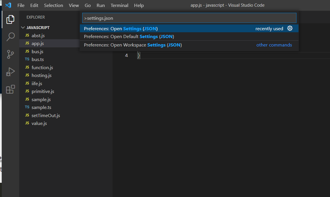 다음으로 settings.json에서 다음 내용을 추가해주세요. settings.json "F1 => settiongs.json" 검색 하시면 됩니다.
