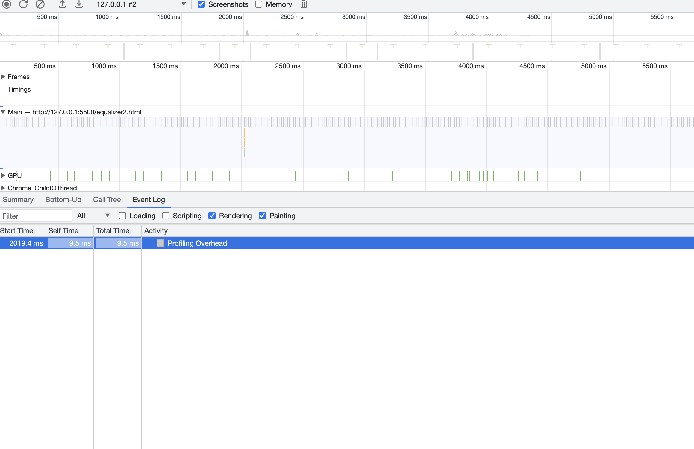์ด๋ฒ์ ๋ชจ๋ฐ์ผ์น์์ ์ฅ์๊ฐ์ผ๋ก ์ผ๋๋ฉด ํธ๋ํฐ์ด ๋นจ๋ฆฌ ๋ฐฐํฐ๋ฆฌ๊ฐ ๋ณ๋๋ค๋ ๋ง์ด ๋์๋ค. ๊ทธ๋์ ์ฑ๋ฅ์ฐจ์ด๋ฅผ ์์๋ณด๋, ๋ธ๋ผ์ฐ์ CPU๊ฐ ๊ฝค ๋ง์ด ์ก์๋จน๊ณ ์์๋ค... ์์ธ์ ๋ ๋๋ง์ด ๋ง์์ ธ์ ์ฐ์ฐ์ด ๋ง์ด ์ด๋ฃจ์ด์ง๊ฑธ๋ก ํ์ธ๋์๋ค. "Layout" ๋ง์ด ์ด๋ฃจ์ด์ ธ์ ์ฅ์๊ฐ ์ผ๋๋ฉด CPU ์ฌ์ฉ๋์ด ๋ง์์,.. ๋ฐฐํฐ๋ฆฌ๊ฐ ๋นจ๋ฆฌ ๋ณ๋๋ค.