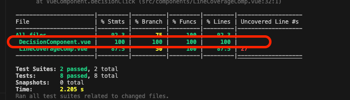 describe('결정 커버리지 컴퍼넌트 테스트', () => {