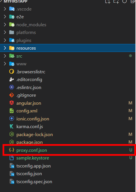 ์ผ๋จ ๋ฃจํธ ํด๋์ proxy.conf.json ํ์ผ์ ๋ง๋ค์ด์ค๋ค. ์๋ ์ฌ์ง์ฒ๋ผ ํ์ผ์ ๋ง๋ค์ด์ค๋ค.