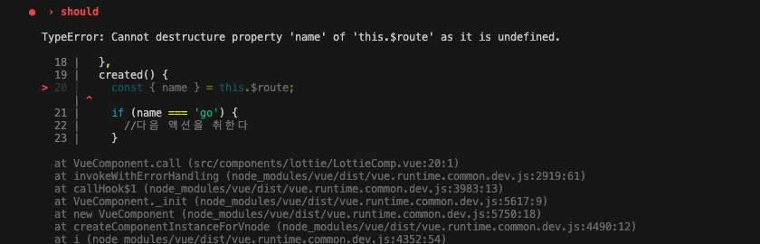 테스트코드 작성시 $route관련하여, undefined 오류가 발생하였다.