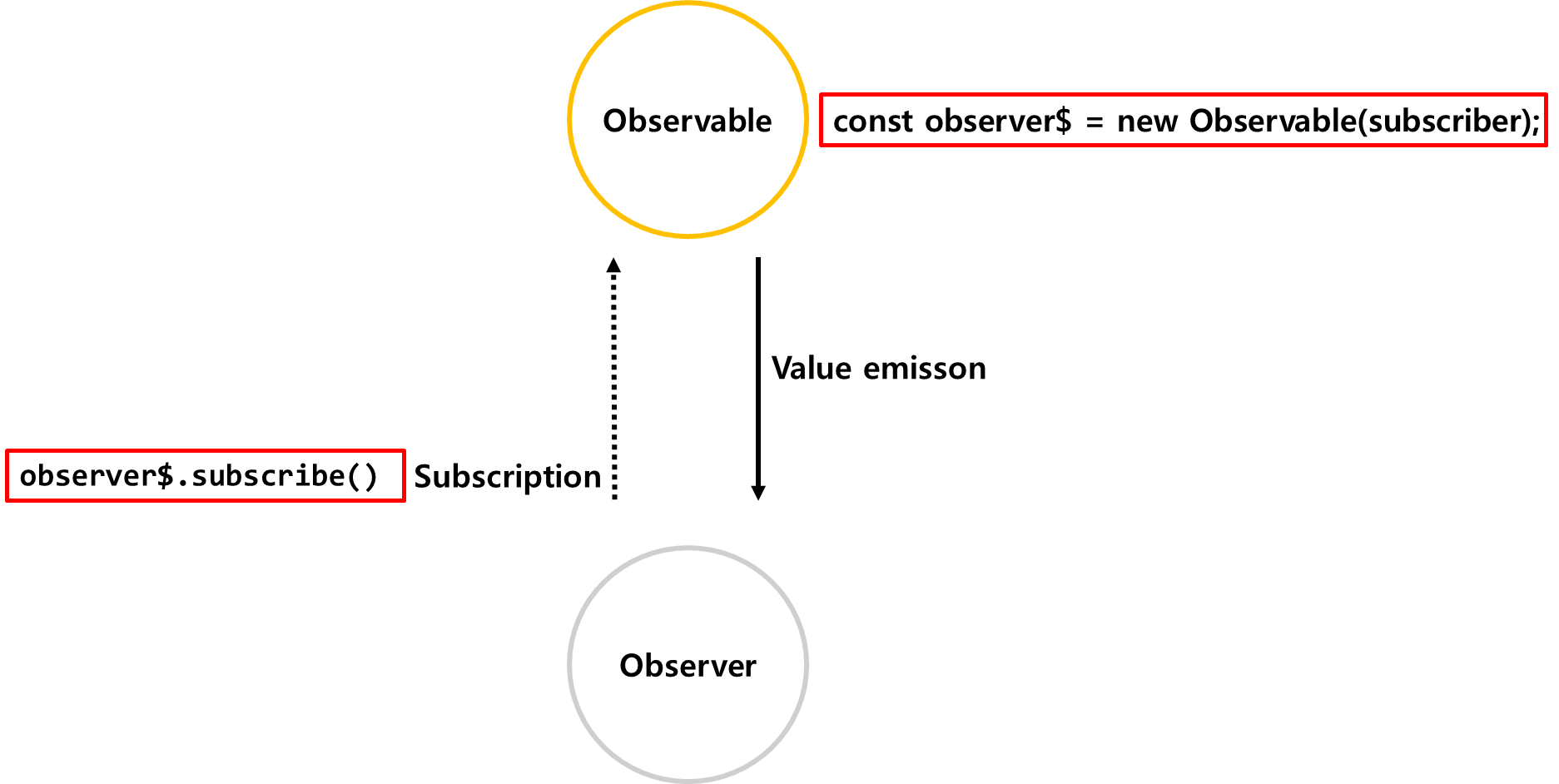 1.๊ตฌ๋ ํจ์(subscriber)๋ฅผ ๋ง๋ค๊ณ , ๊ตฌ๋ ํจ์๋ฅผ Obserable๋ฅผ ์์ฑํฉ๋๋ค.