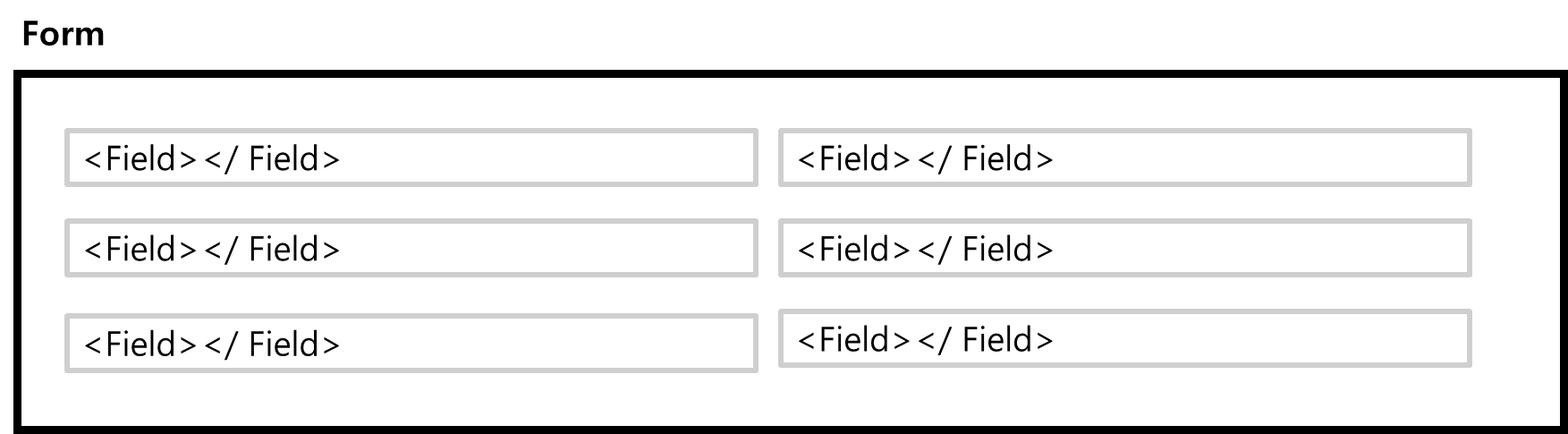 ํฌ๊ฒ "Form" ์ปดํผ๋ํธ์ผ๋ก ๊ฐ์ธ๊ณ "Form" ์์ "Field" ์ปดํผ๋ํธ๋ฅผ ๋ฃ๋๋ค.