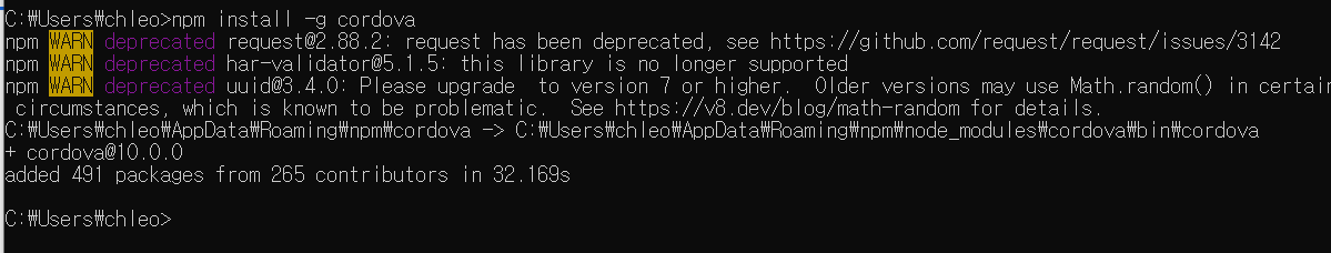 ๐ ๋ค์์ผ๋ก Cordova๋ฅผ ์ค์นํด์ฃผ์ธ์