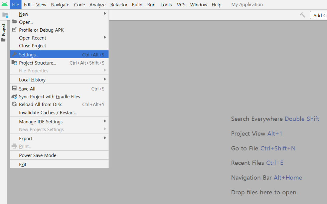 File > Settings๋ฅผ ํด๋ฆญํด์ฃผ์ธ์~