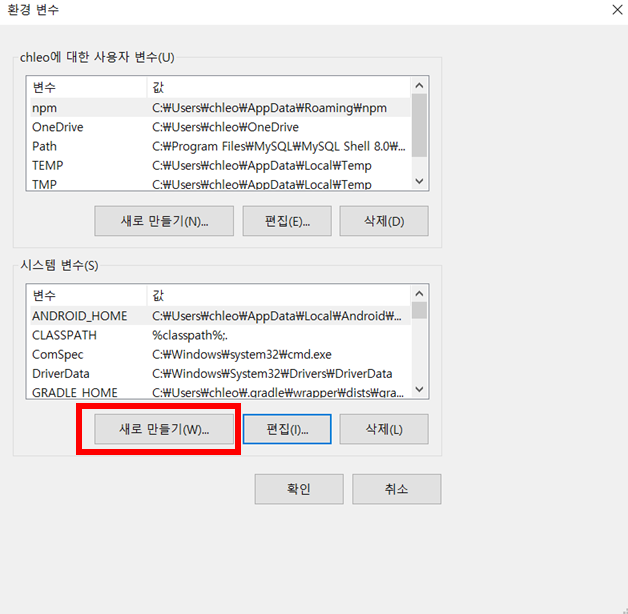 ๊ทธ ๋ค์ ์๋์ฐ ํ๊ฒฝ๋ณ์ ํ๋ ๊ณณ์ผ๋ก ์ด๋ํด์ฃผ์ธ์~