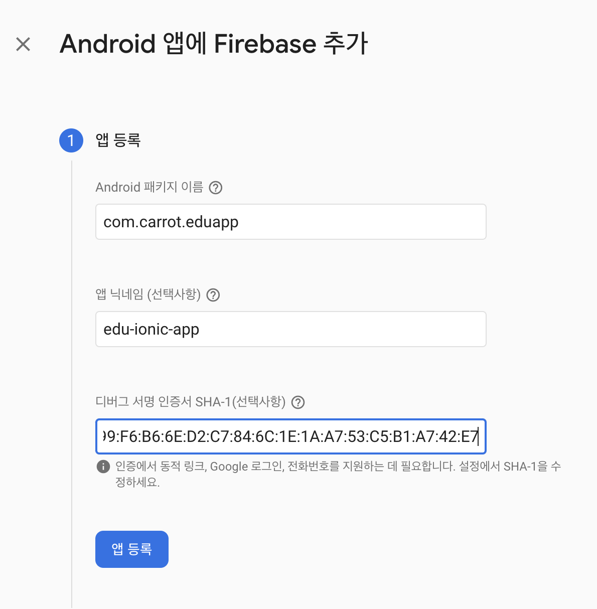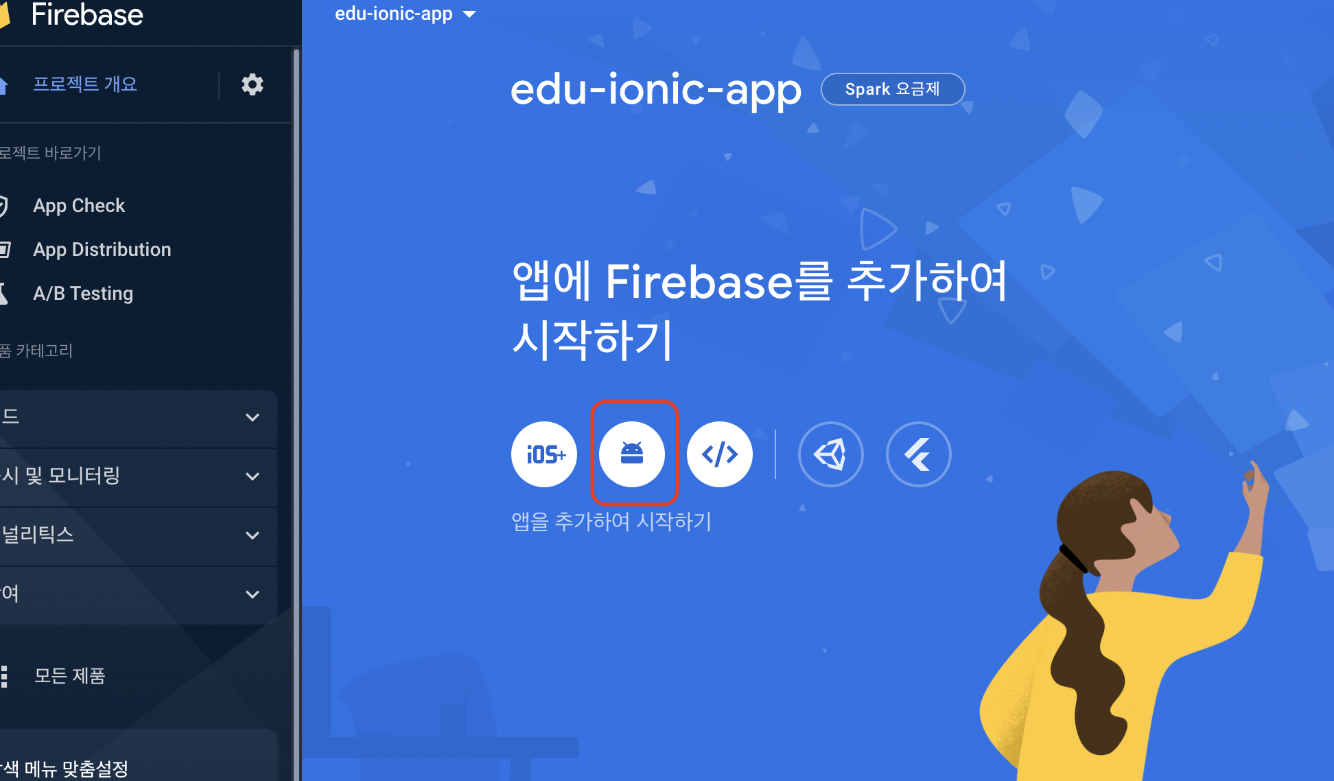 firebase사이트에서 아래 사진처럼 "android"를 선택한다.