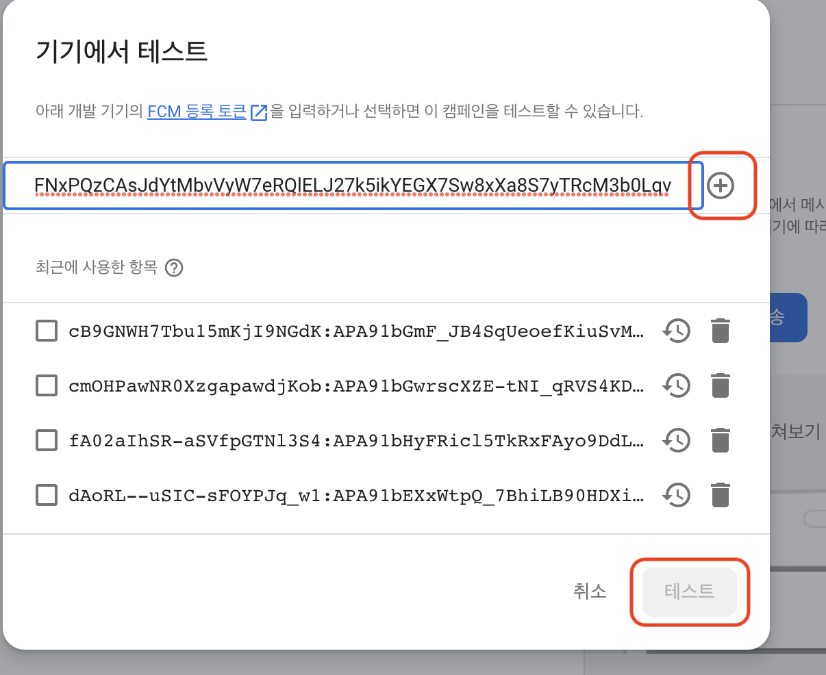 2.위에서 얻은 token으로 firebase에 테스트로 메세지를 전송해본다.